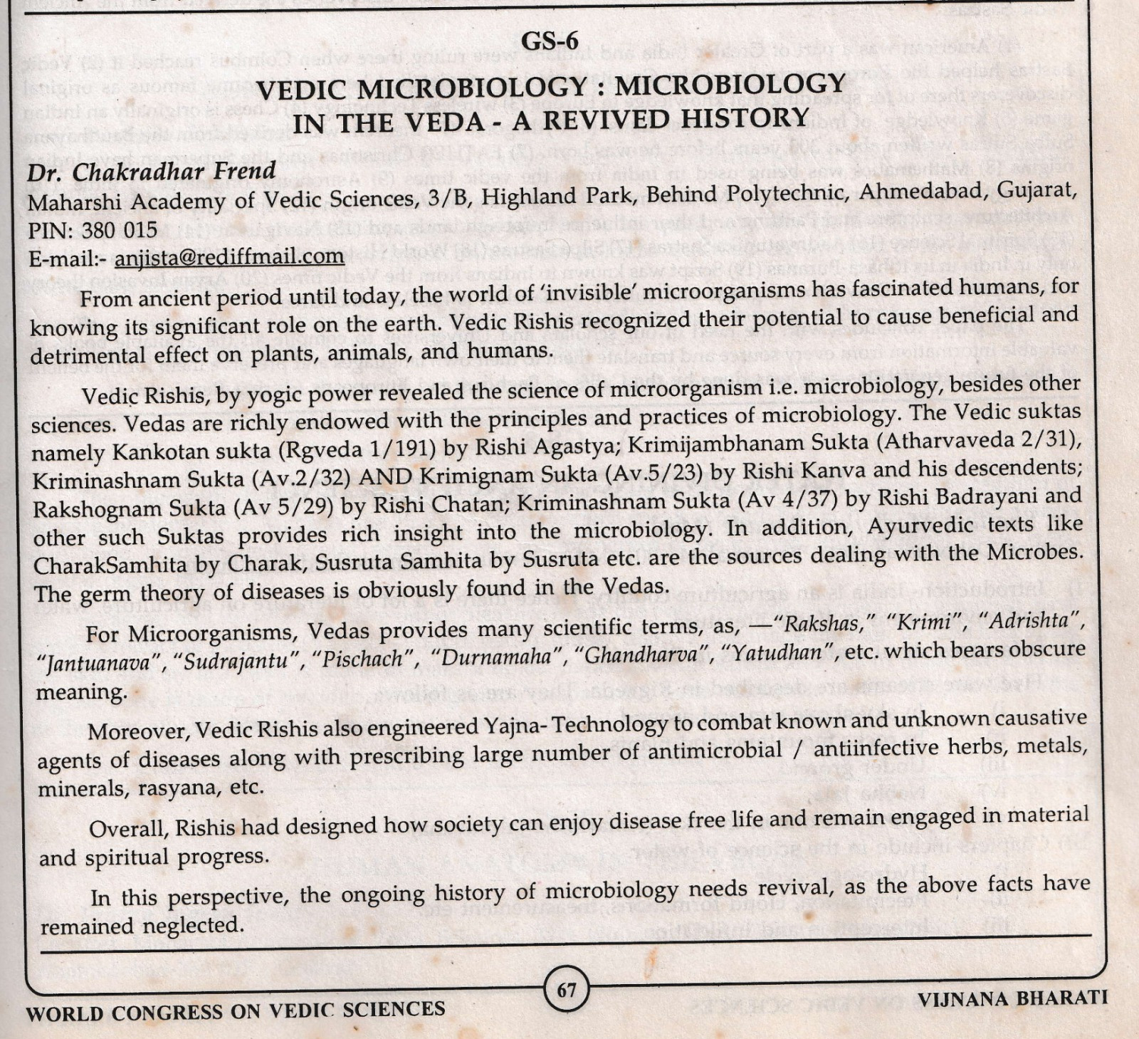 Email- vedicmicrobiology@gmail.com